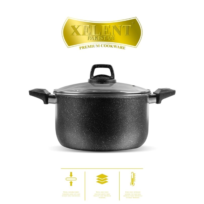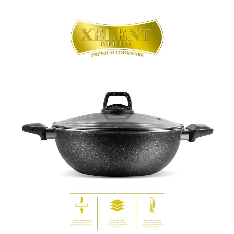 Enhance your cooking experience with the Xelent Pakistan Marble Coated Cookware Sets. Designed for both performance and style, these sets provide an elegant touch to any kitchen. Their smooth marble coating not only adds sophistication but also ensures durability and ease of use.