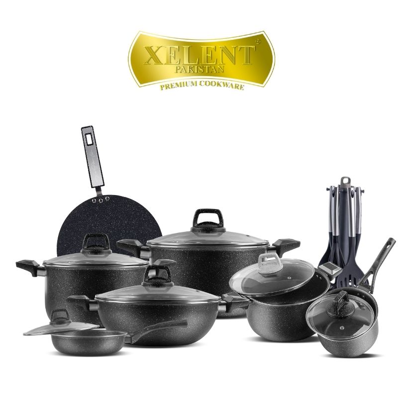 Xelent Pakistan Marble Jumbo Cookware Set 19 Pcs