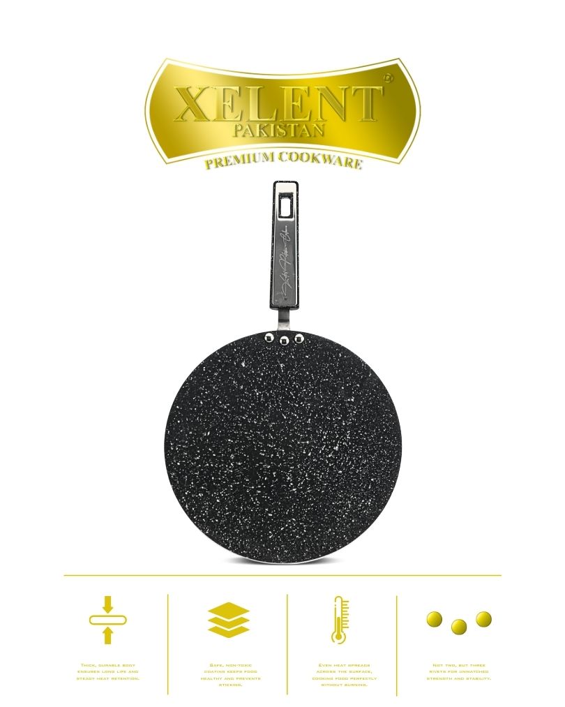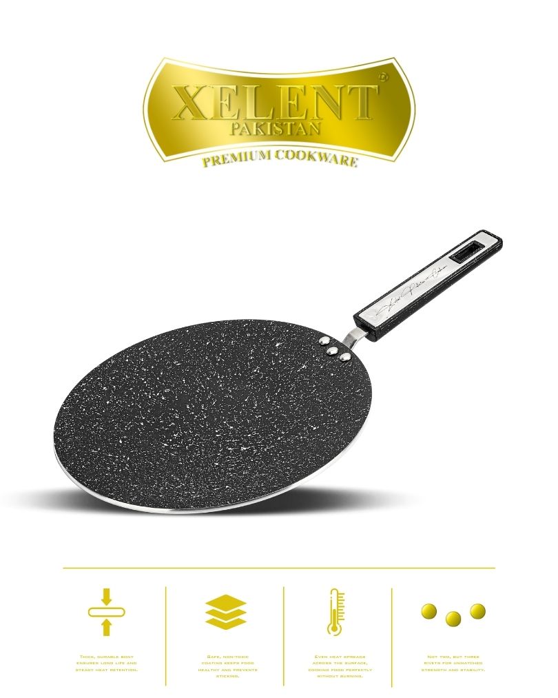 The tawa is coated with a high-quality marble finish that provides an excellent non-stick experience. This smooth surface ensures that food releases effortlessly, reducing the need for excess oil or butter. The non-stick coating also makes cleanup quick and hassle-free, saving you time and effort in the kitchen.