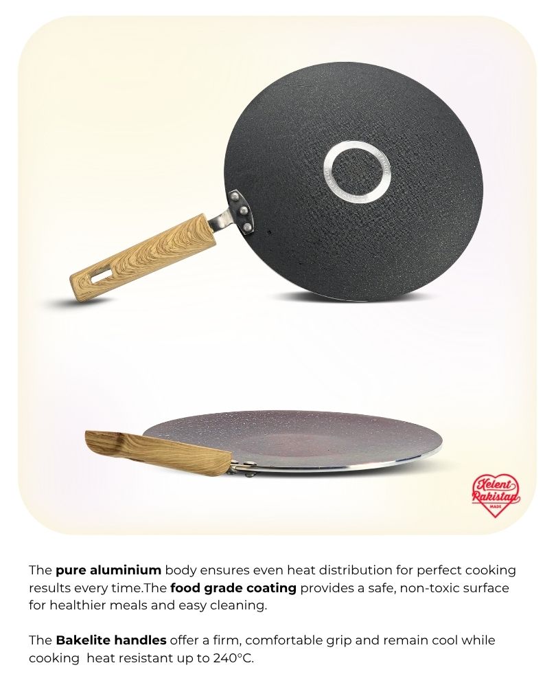 The tawa comes with a sturdy, heat-resistant handle that offers a comfortable grip. The ergonomic design makes it easy to maneuver, even when cooking for extended periods. This ensures your hands stay safe while you focus on preparing delicious meals.