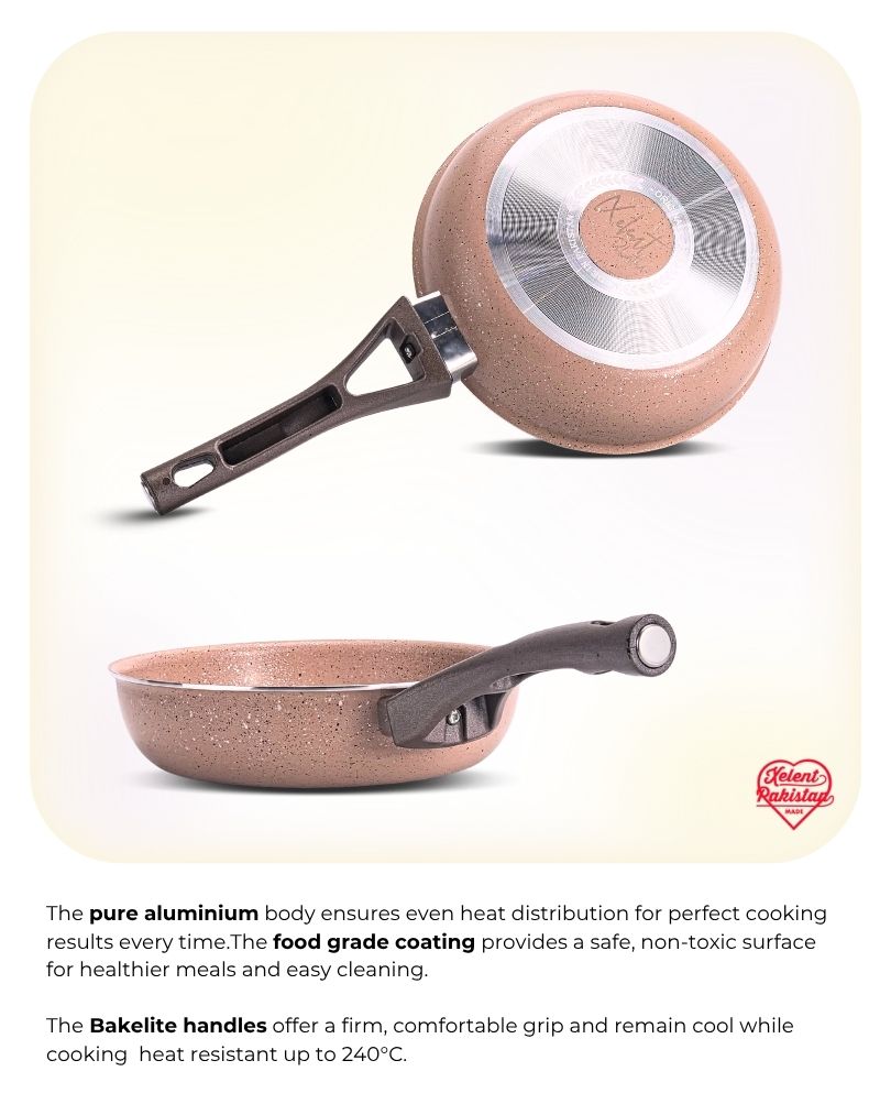 The sleek, marble-coated exterior adds a touch of sophistication to your kitchen. Its stylish design not only enhances your cooking experience but also complements any kitchen decor. The frypan’s modern look makes it a perfect addition to both contemporary and traditional kitchens.
